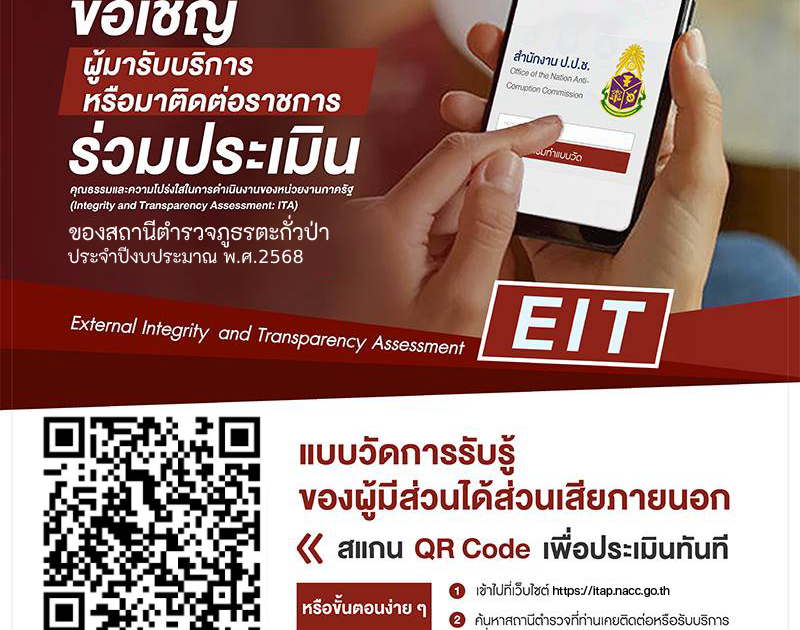 แบบวัดการรับรู้ของผู้มีส่วนได้ส่วนเสียภายนอก (External Integrity and Transparency Assessment: EIT) สำหรับนำไปพัฒนาปรับปรุงการให้บริการของสถานีตำรวจ